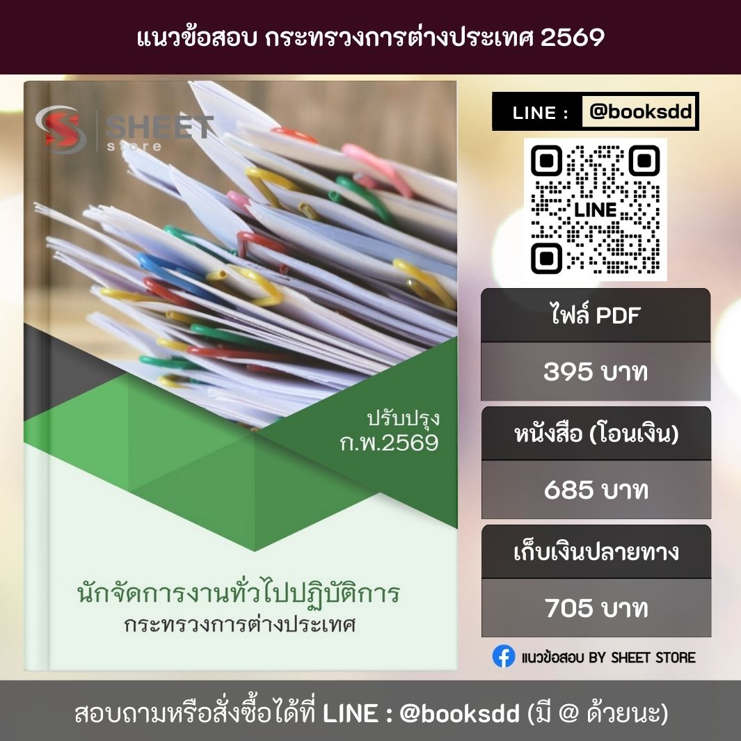 แนวข้อสอบ นักจัดการงานทั่วไปปฏิบัติการ กระทรวงการต่างประเทศ 2569 เนื้อหาครบถ้วน ครอบคลุมทุกหัวข้อที่ต้องรู้ ครบตามประกาศรับสมัคร 📝 แนวข้อสอบ พร้อมเฉลยละเอียด ที่จะช่วยให้คุณสอบผ่านได้อย่างมั่นใจ จัดทำโดยทีมงานมืออาชีพเฉพาะตำแหน่ง สามารถสั่งซื้อ แนวข้อสอบ นักจัดการงานทั่วไป กระทรวงการต่างประเทศ 69 ได้ที่ LINE ID : @booksdd
