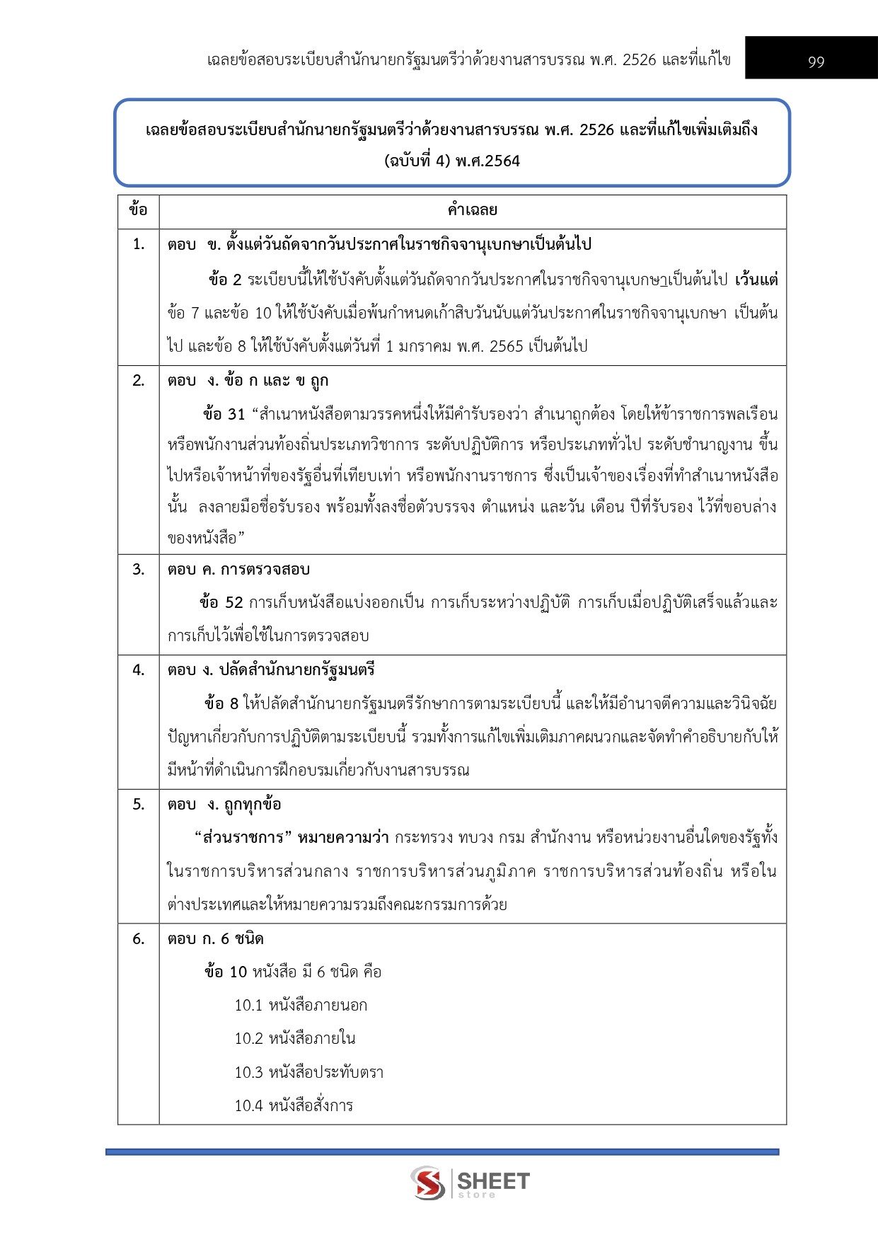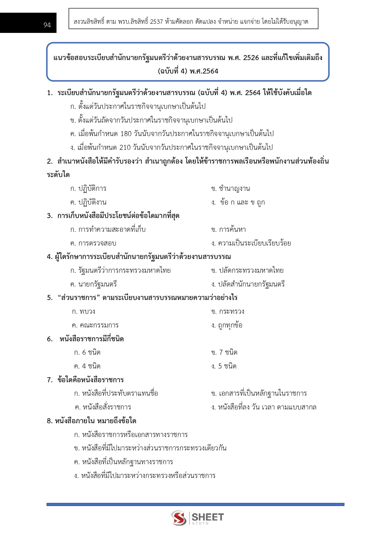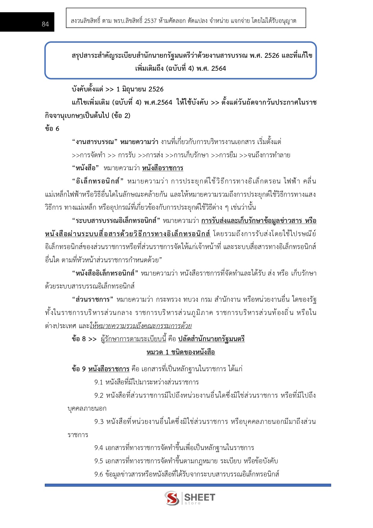 – แนวข้อสอบระเบียบสำนักนายกรัฐมนตรีว่าด้วยงานสารบรรณ พ.ศ.2526 และที่แก้ไขเพิ่มเติมถึง (ฉบับที่ 4) พ.ศ.2564