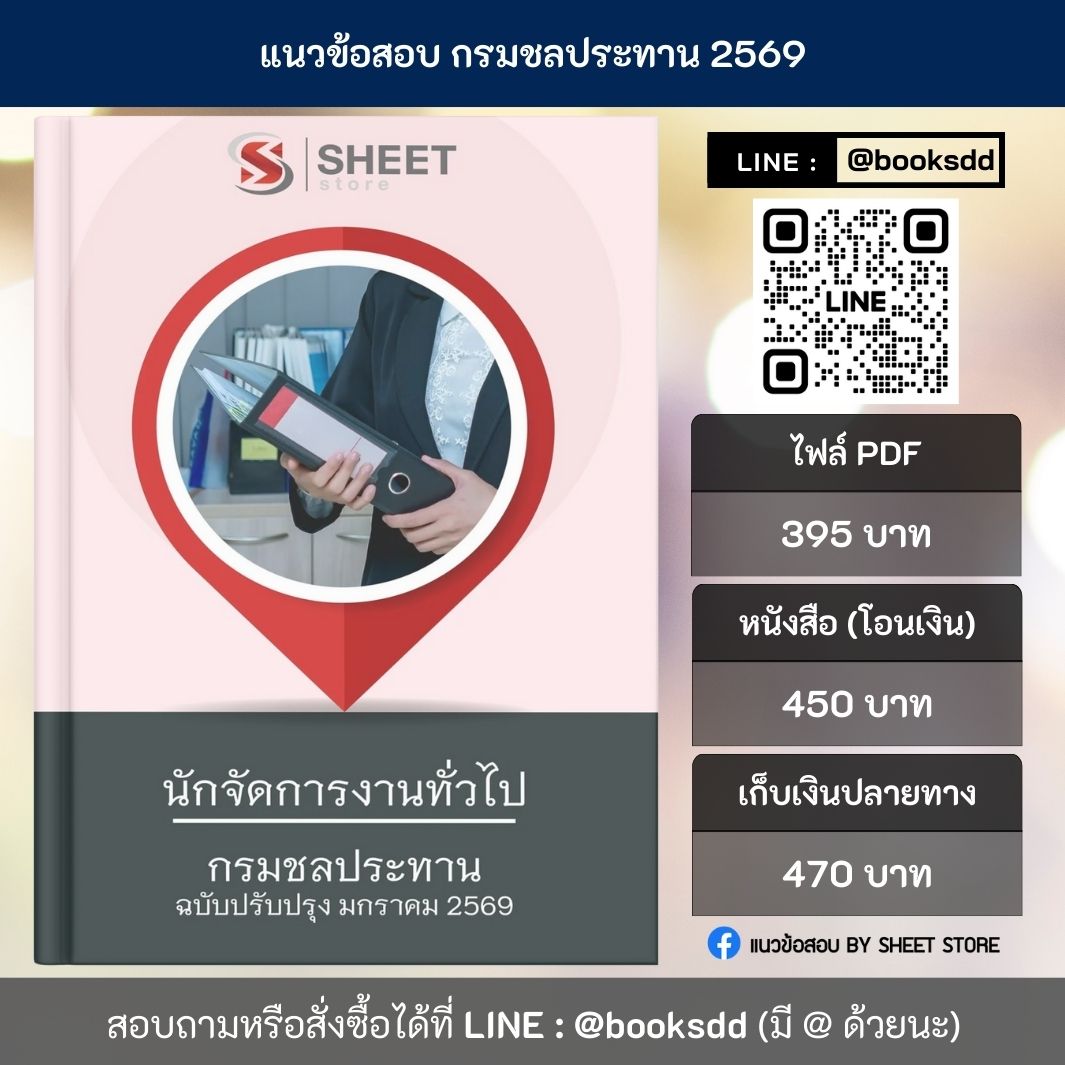 แนวข้อสอบ นักจัดการงานทั่วไป กรมชลประทาน 2569 เนื้อหาครบถ้วน ครอบคลุมทุกหัวข้อที่ต้องรู้ ครบตามประกาศรับสมัคร 📝 แนวข้อสอบ พร้อมเฉลยละเอียด ที่จะช่วยให้คุณสอบผ่านได้อย่างมั่นใจ จัดทำโดยทีมงานมืออาชีพเฉพาะตำแหน่ง สามารถสั่งซื้อ แนวข้อสอบนักจัดการงานทั่วไป กรมชลประทาน 69 ได้ที่ LINE ID : @booksdd