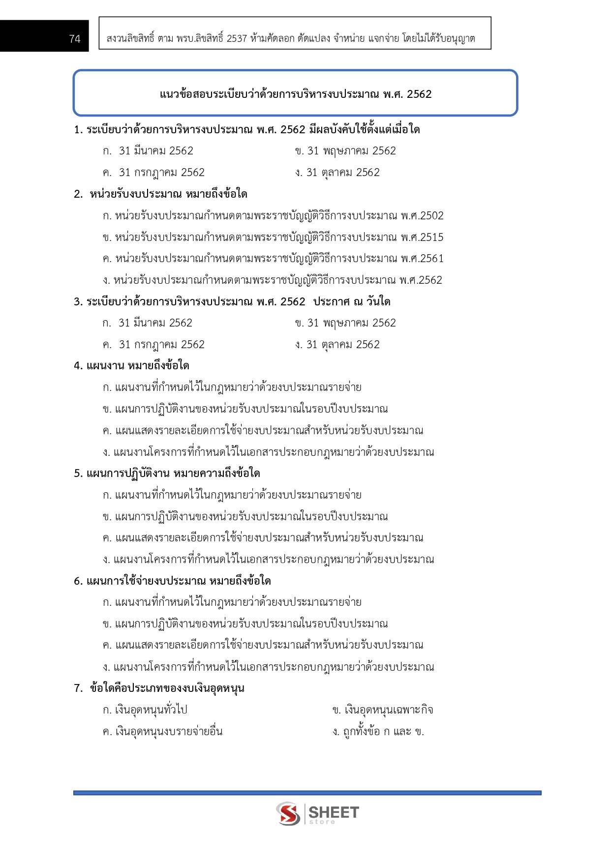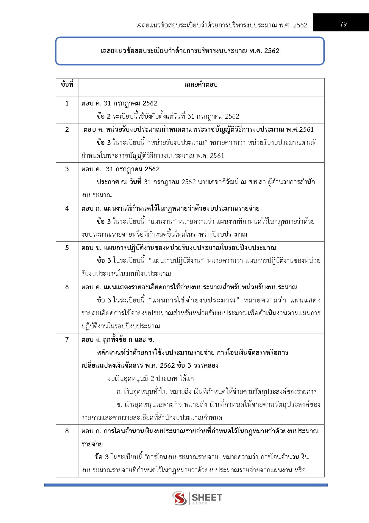 – แนวข้อสอบระเบียบว่าด้วยการบริหารงบประมาณ พ.ศ. 2562