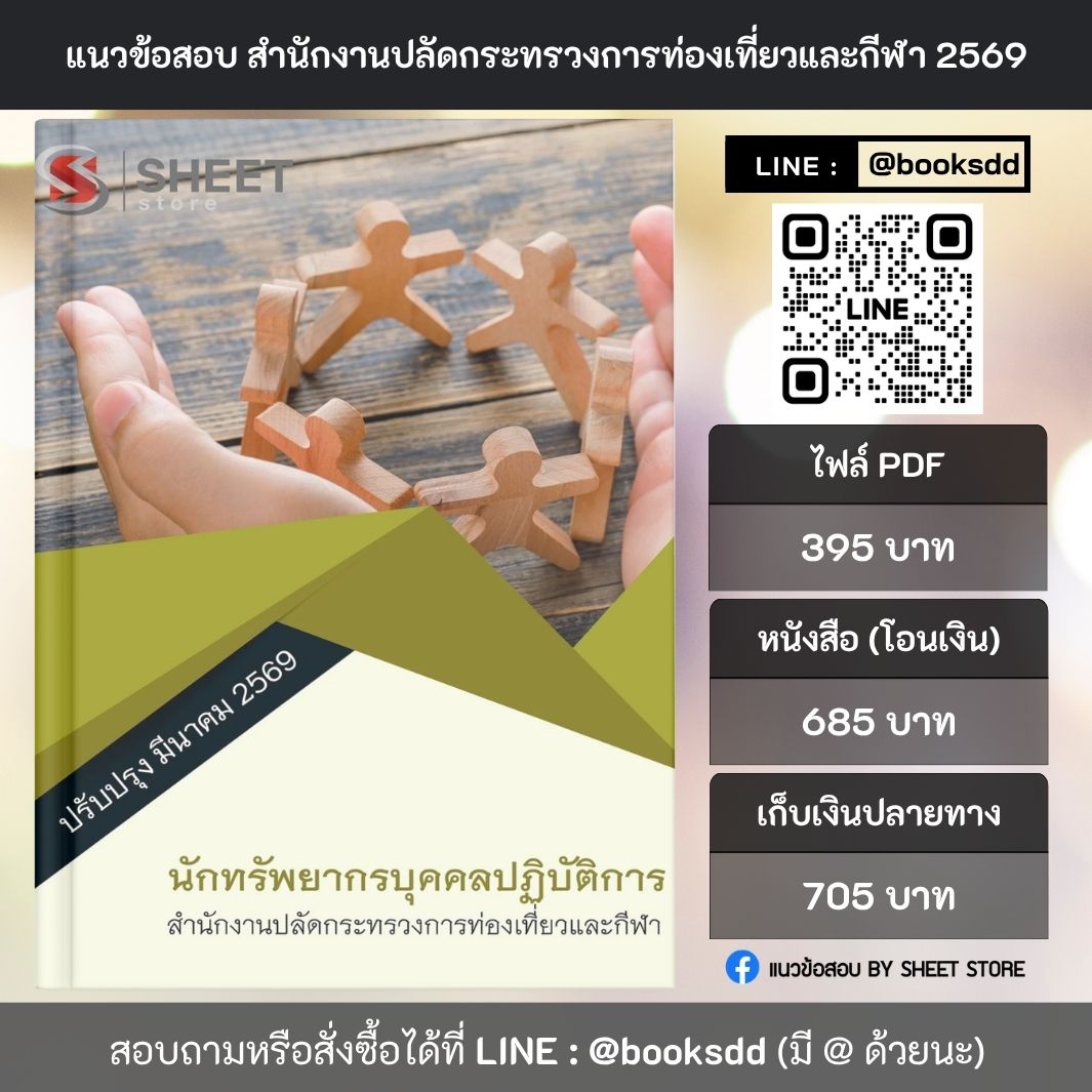 แนวข้อสอบ นักทรัพยากรบุคคลปฏิบัติการ สำนักงานปลัดกระทรวงการท่องเที่ยวและกีฬา (สป.กก.) 69 ครบจบในเล่มเดียว ปรับปรุง มีนาคม 2569 ** จัดส่งฟรี