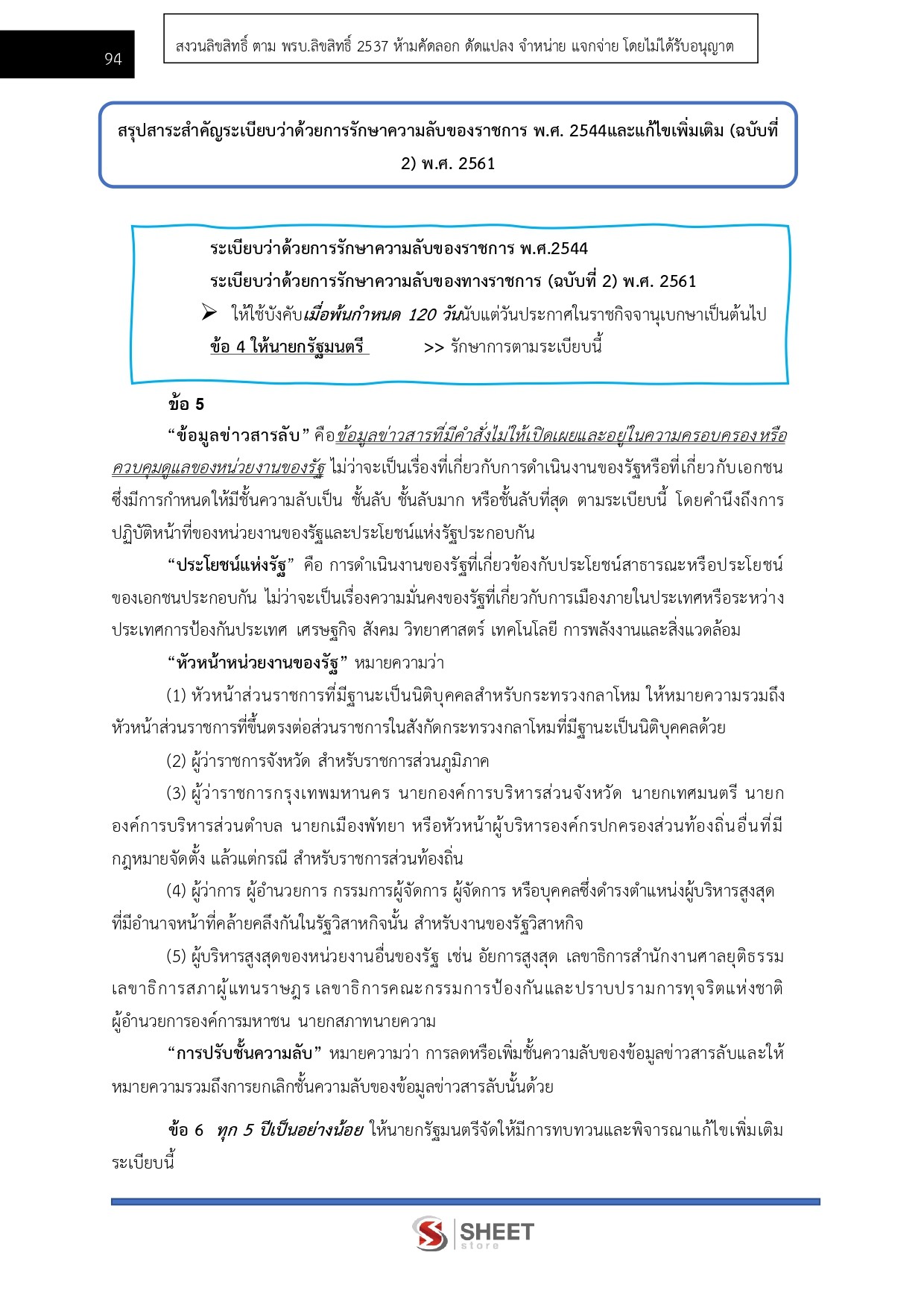 – แนวข้อสอบสรุประเบียบว่าด้วยการรักษาความลับของราชการ พ.ศ. 2544 และแก้ไขเพิ่มเติม (ฉบับที่ 2) พ.ศ. 2561