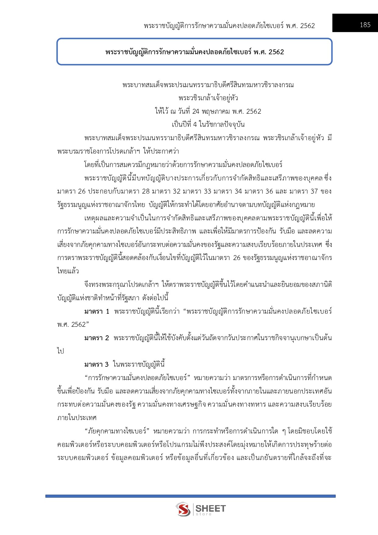 – พระราชบัญญัติการรักษาความมั่นคงปลอดภัยไซเบอร์ พ.ศ. 2562