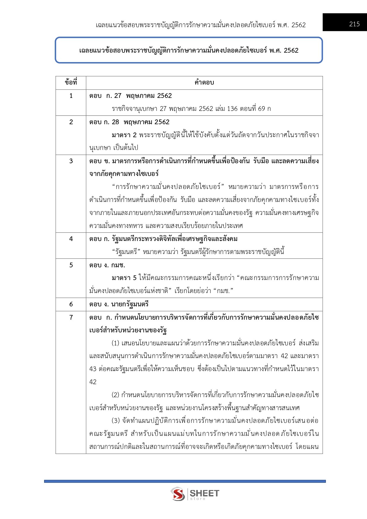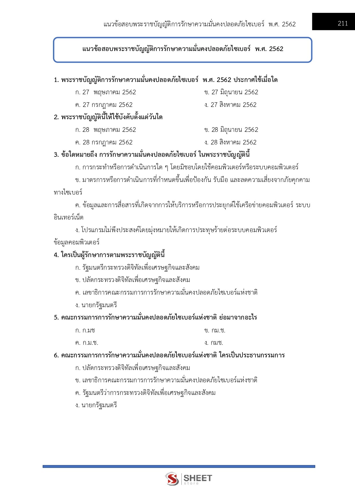– แนวข้อสอบพระราชบัญญัติการรักษาความมั่นคงปลอดภัยไซเบอร์ พ.ศ. 2562