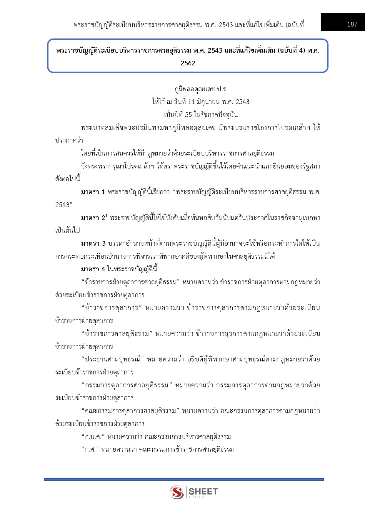 – แนวข้อสอบพระราชบัญญัติระเบียบบริหารราชการศาลยุติธรรม พ.ศ. 2543 และที่แก้ไขเพิ่มเติม (ฉบับที่ 4) พ.ศ. 2562
