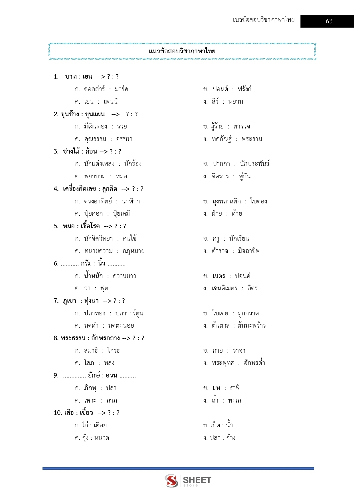 – แนวข้อสอบวิชาภาษาไทย