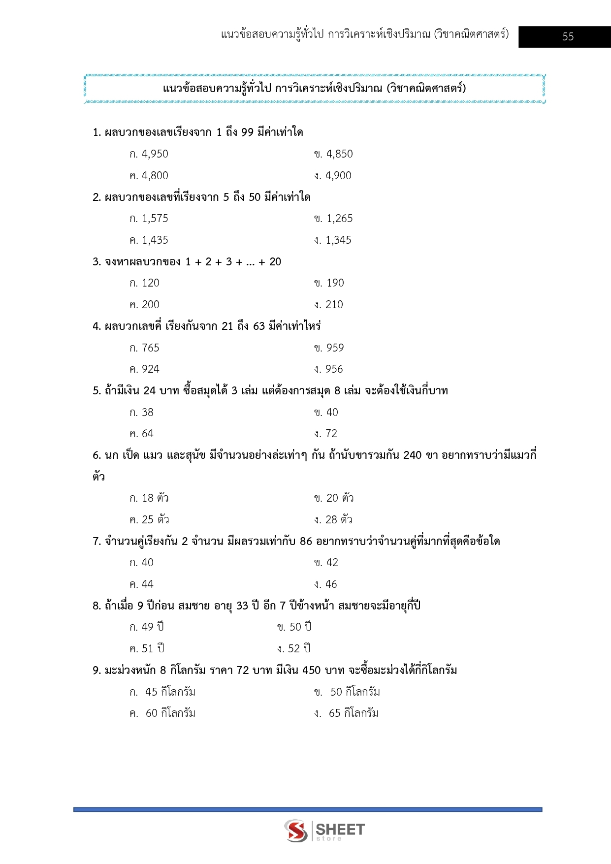 – แนวข้อสอบ ความรู้ความสามารถทั่วไป (คณิตศาสตร์)