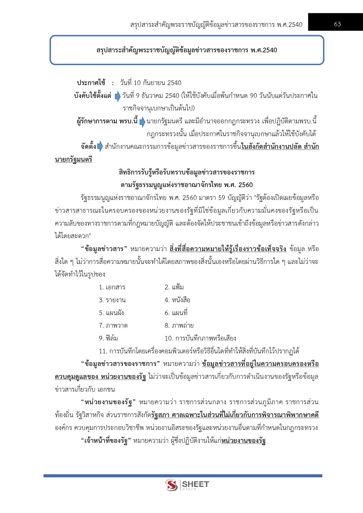 – แนวข้อสอบสรุปสาระสำคัญพระราชบัญญัติข้อมูลข่าวสารของราชการ พ.ศ. 2540