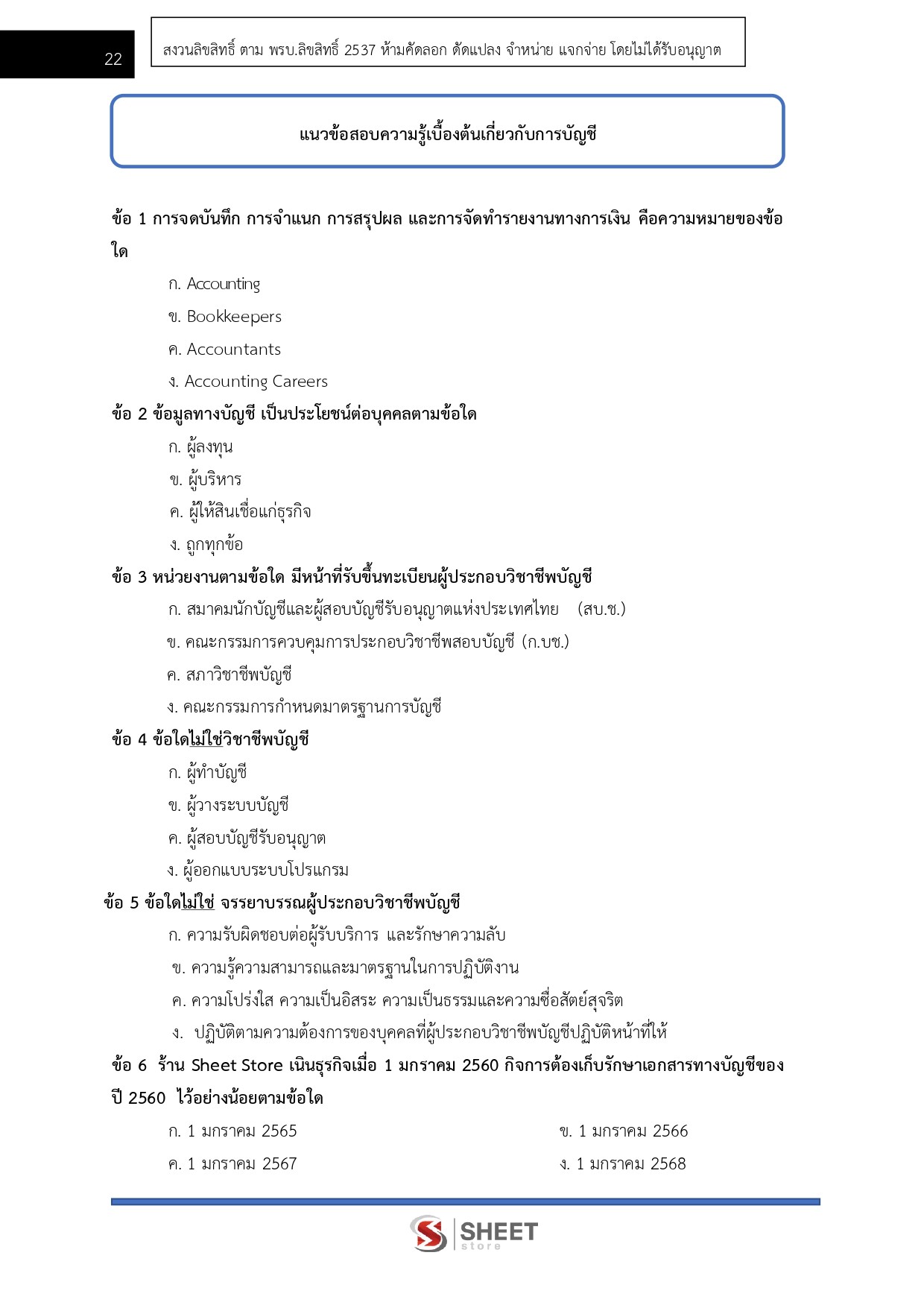 – แนวข้อสอบความรู้เกี่ยวกับการบัญชีเบื้องต้น