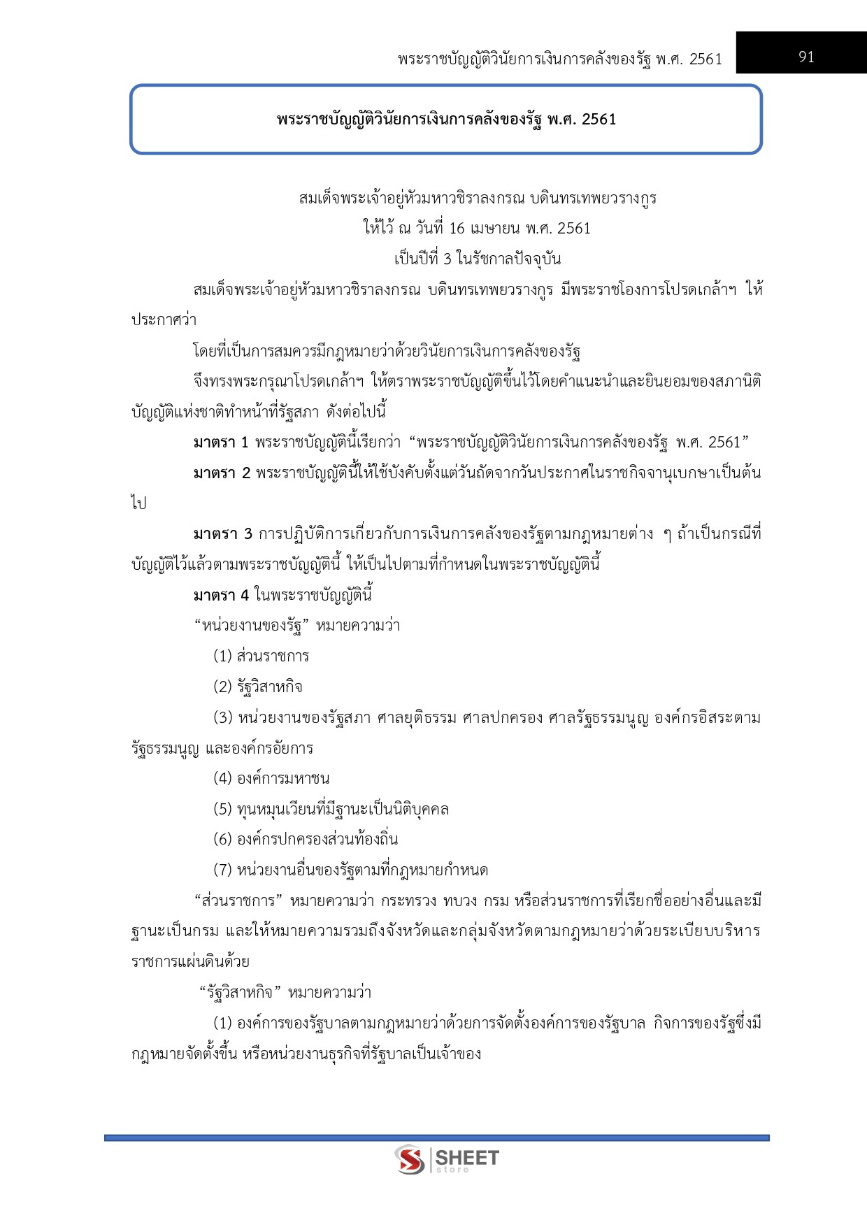 – พระราชบัญญัติวินัยการเงินการคลังของรัฐ พ.ศ.2561