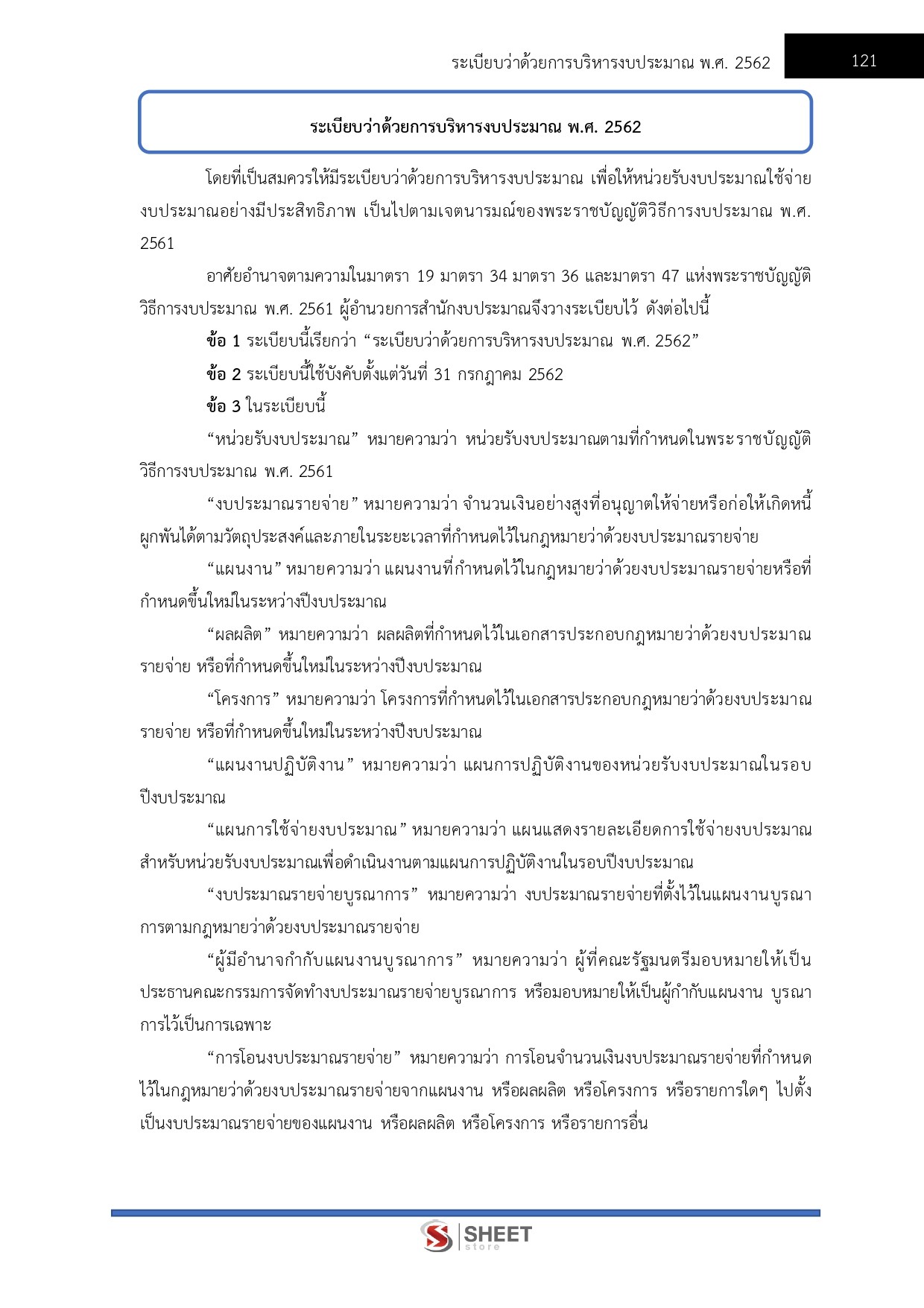 – ระเบียบว่าด้วยการบริหารงบประมาณ พ.ศ.2562