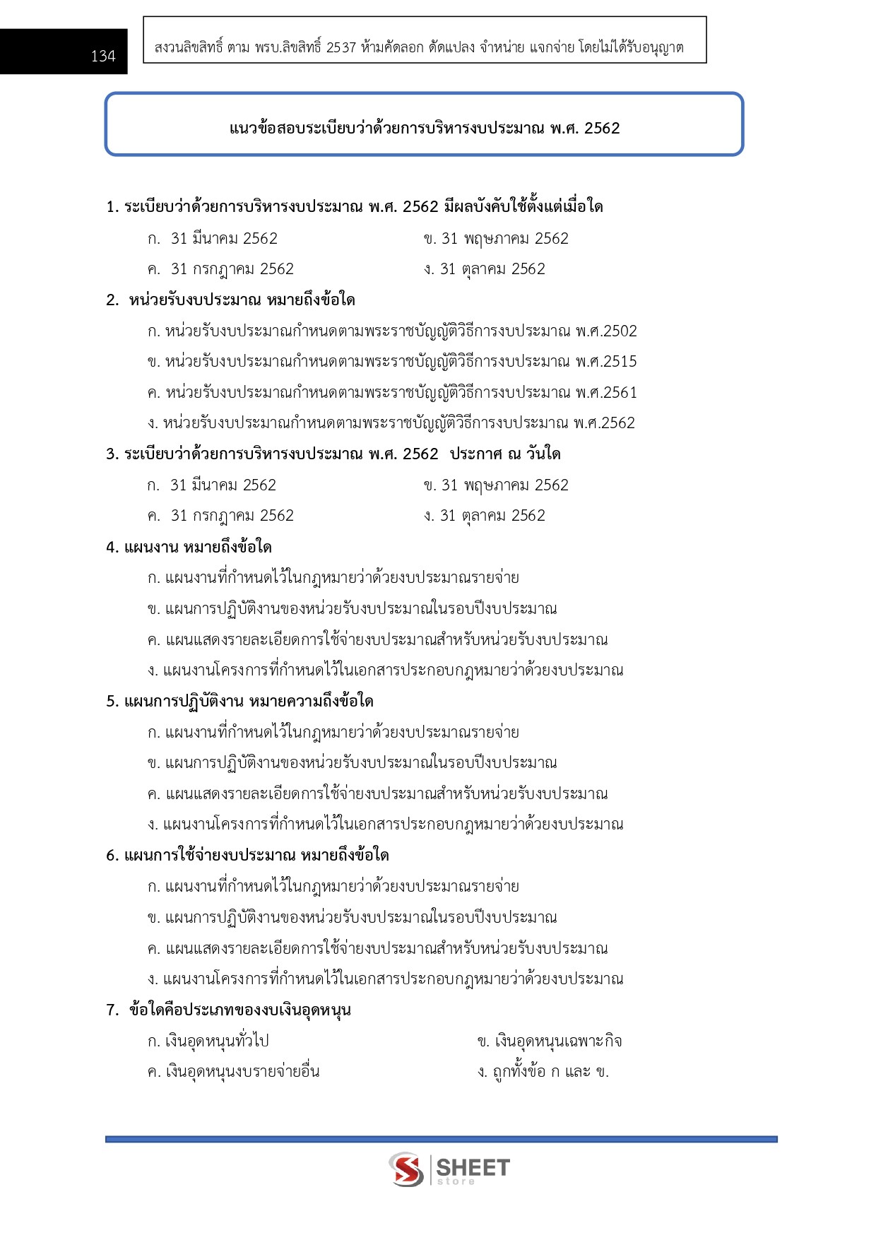– แนวข้อสอบระเบียบว่าด้วยการบริหารงบประมาณ พ.ศ.2562