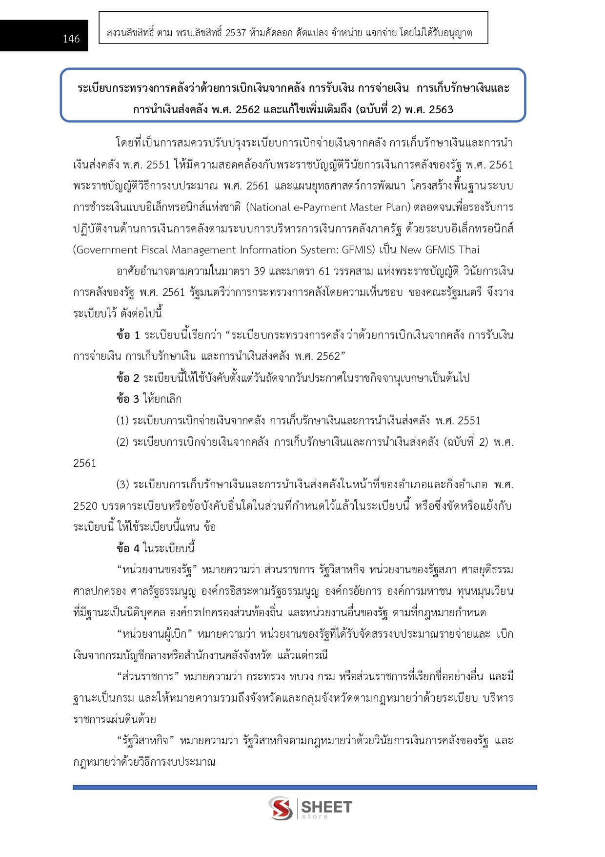 – แนวข้อสอบระเบียบกระทรวงการคลังว่าด้วยการเบิกเงินจากคลัง การรับเงิน การจ่ายเงิน การเก็บรักษาเงินและการนำเงินส่งคลัง พ.ศ.2562 และที่แก้ไขเพิ่มเติมถึง (ฉบับที่ 2) พ.ศ.2563