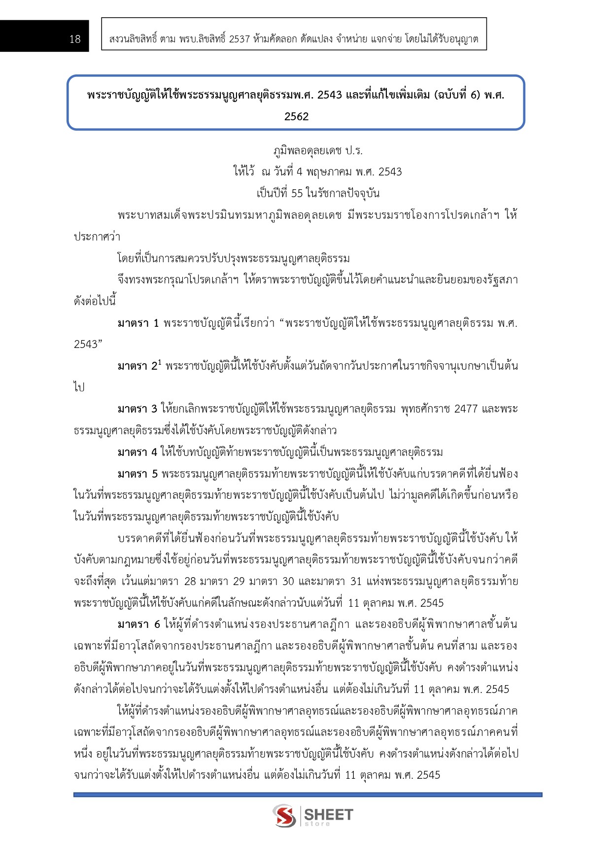 – แนวข้อสอบพระราชบัญญัติให้ใช้พระธรรมนูญศาลยุติธรรมพ.ศ. 2543 และแก้ไขเพิ่มเติม (ฉบับที่ 6) พ.ศ. 2562