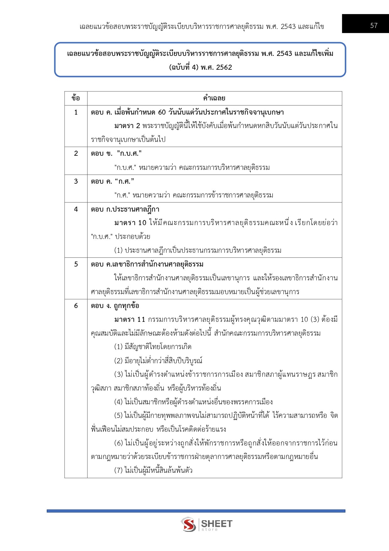 – แนวข้อสอบพระราชบัญญัติระเบียบบริหารราชการศาลยุติธรรม พ.ศ. 2543 และที่แก้ไขเพิ่มเติม (ฉบับที่ 4) พ.ศ. 2562