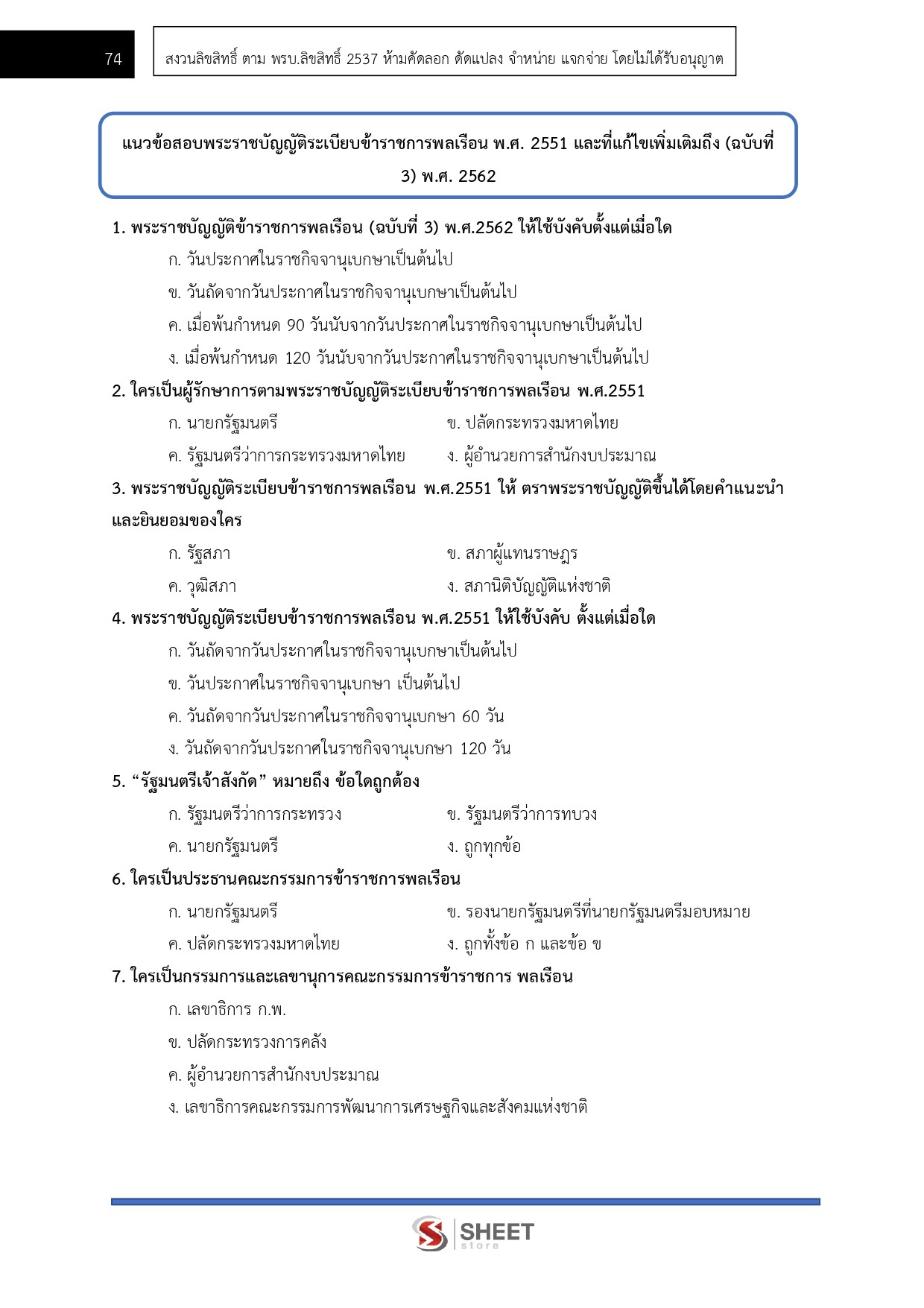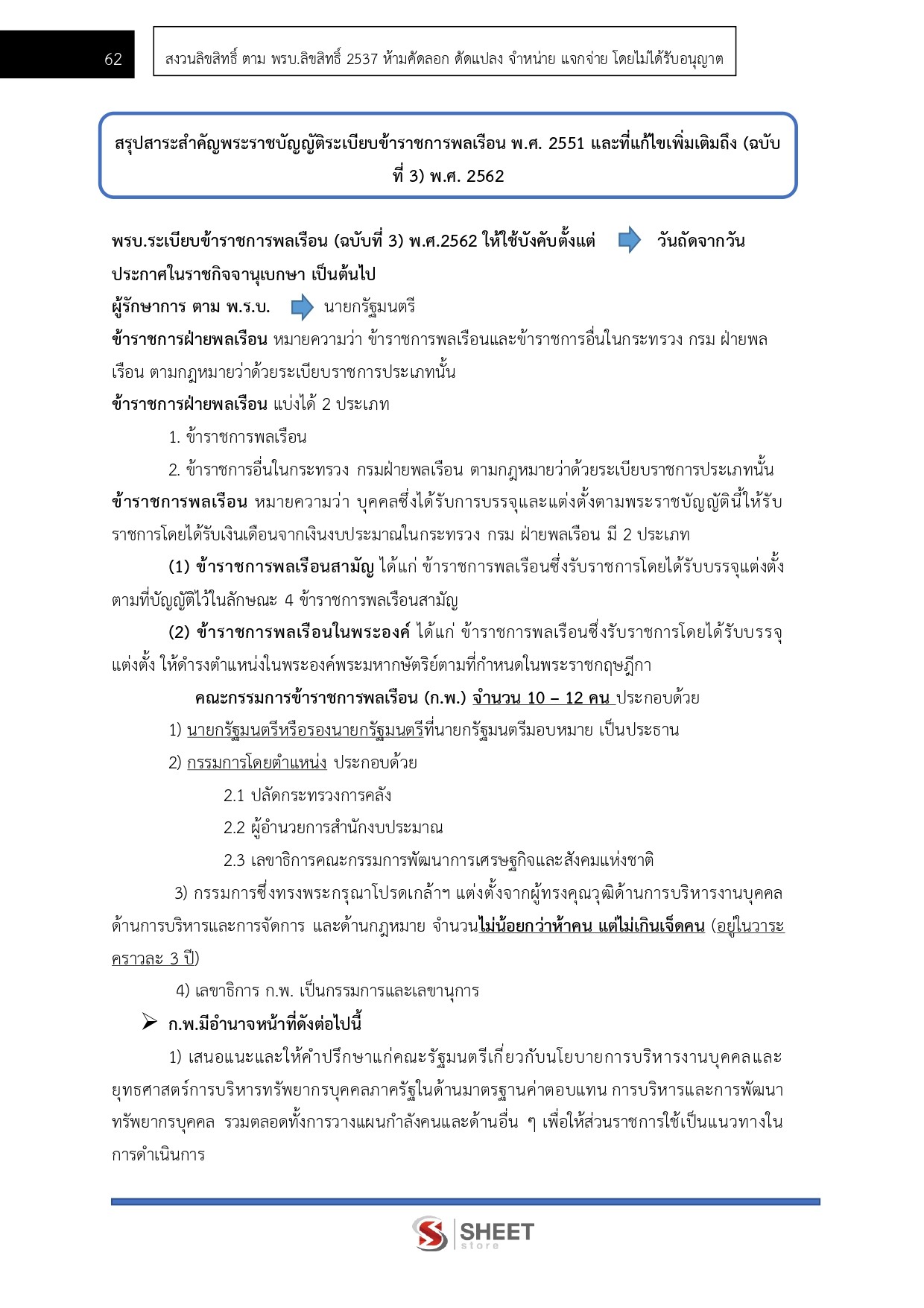 – แนวข้อสอบสรุปสาระสำคัญพระราชบัญญัติระเบียบข้าราชการพลเรือน พ.ศ. 2551 และที่แก้ไขเพิ่มเติมถึง (ฉบับที่ 3) พ.ศ. 2562