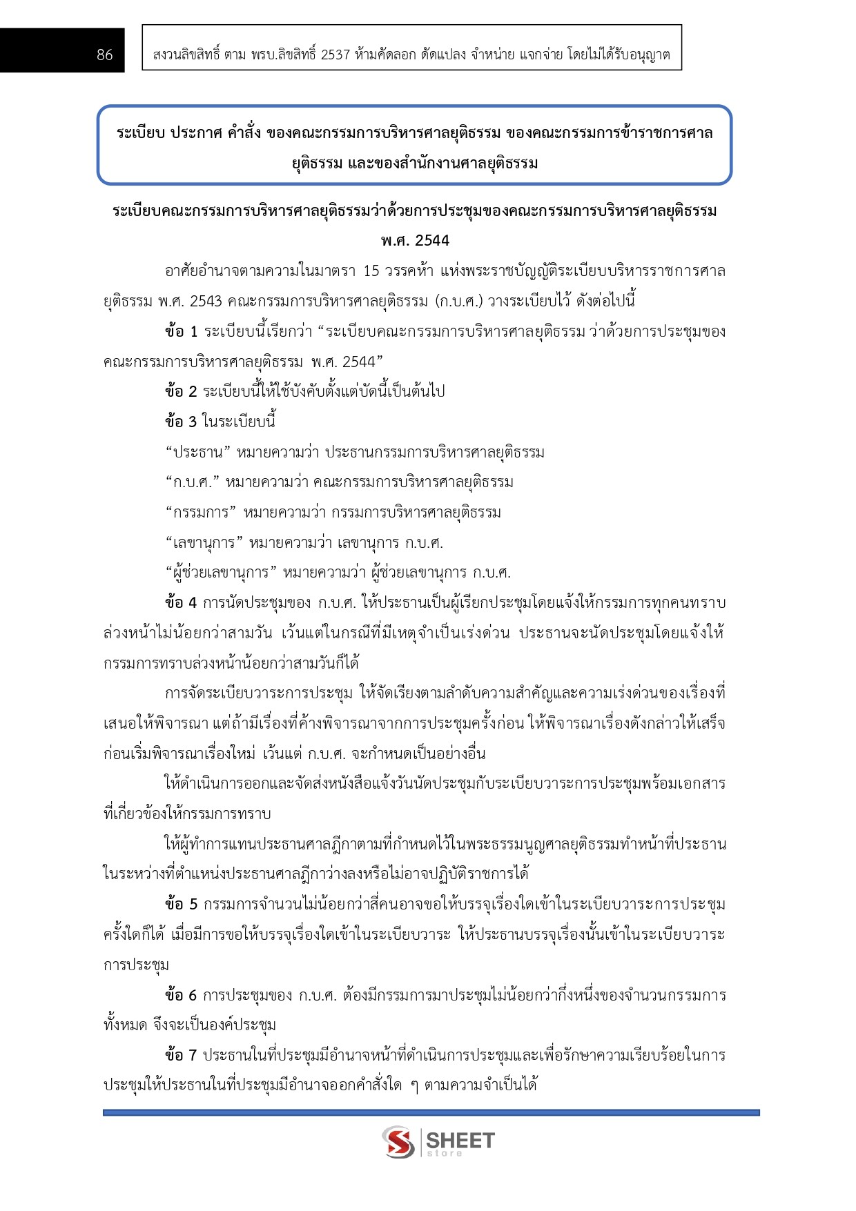 – ระเบียบคณะกรรมการบริหารศาลยุติธรรมว่าด้วยการประชุมของคณะกรรมการบริหารศาลยุติธรรมพ.ศ. 2544