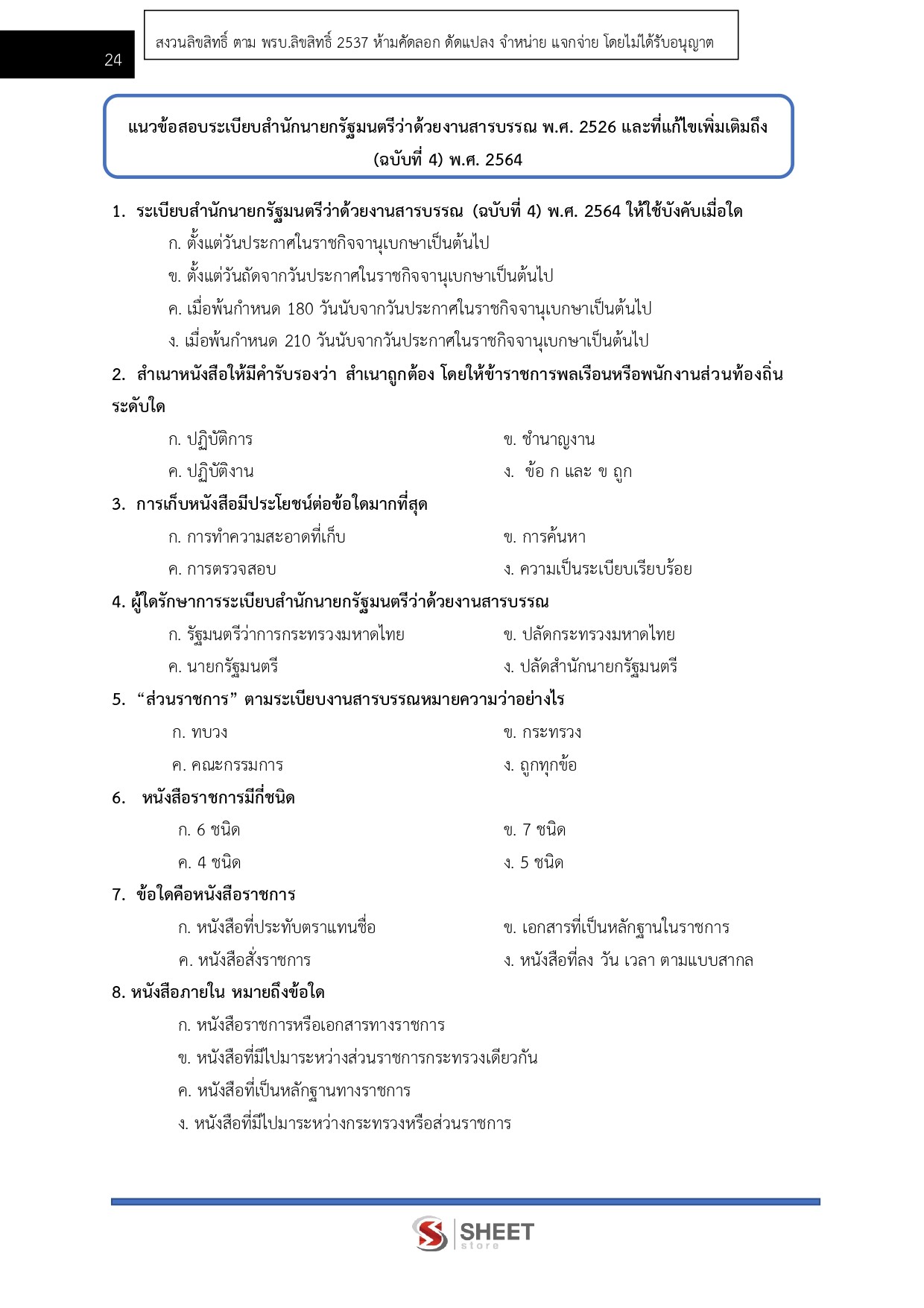 – แนวข้อสอบสรุปสาระสำคัญระเบียบสำนักนายกรัฐมนตรีว่าด้วยงานสารบรรณ พ.ศ. 2526 และที่แก้ไขเพิ่มเติมถึง (ฉบับที่ 4) พ.ศ. 2564