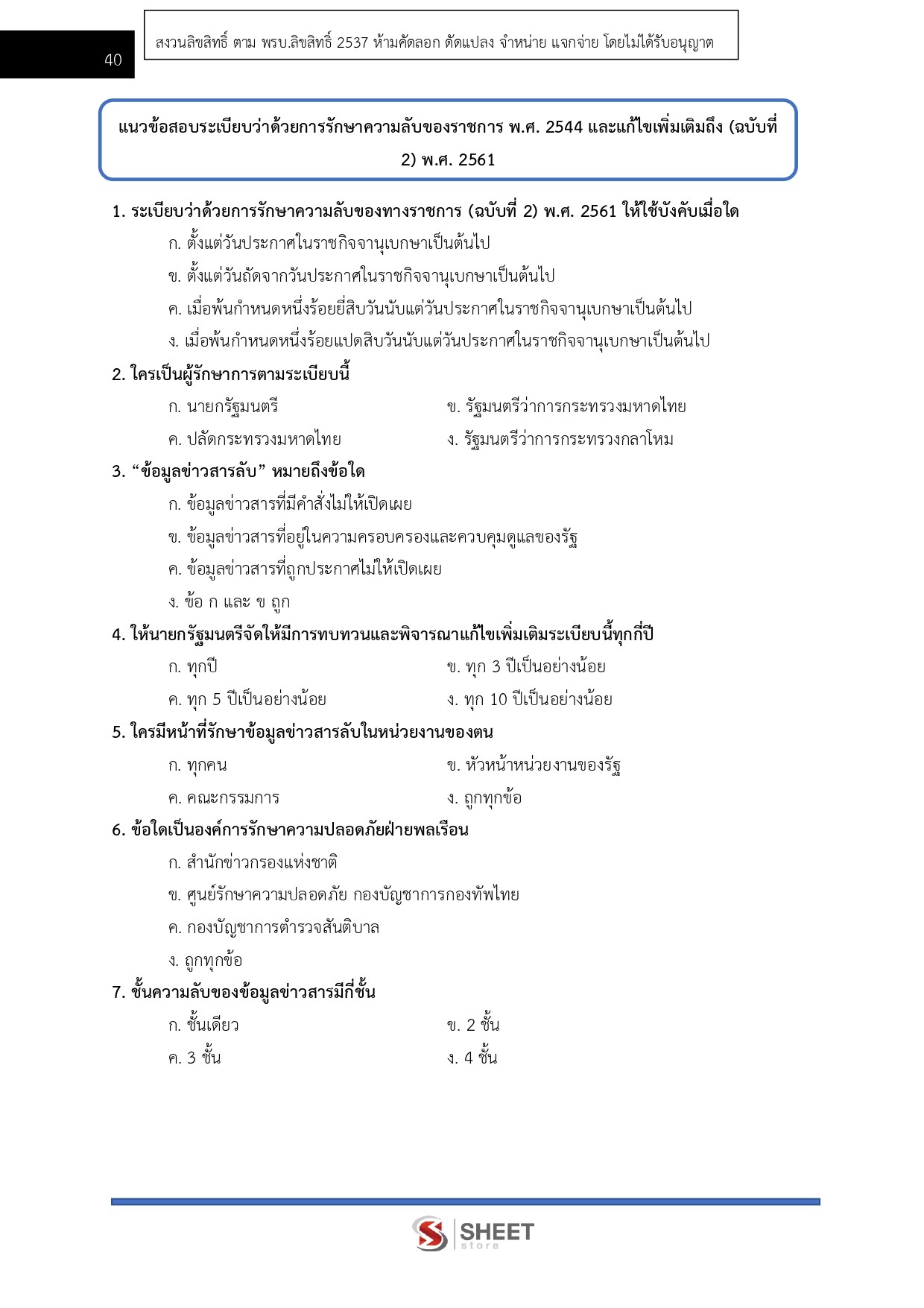 – แนวข้อสอบสรุปสาระสำคัญระเบียบว่าด้วยการรักษาความลับของราชการ พ.ศ. 2544 และแก้ไขเพิ่มเติม (ฉบับที่ 2) พ.ศ. 2561