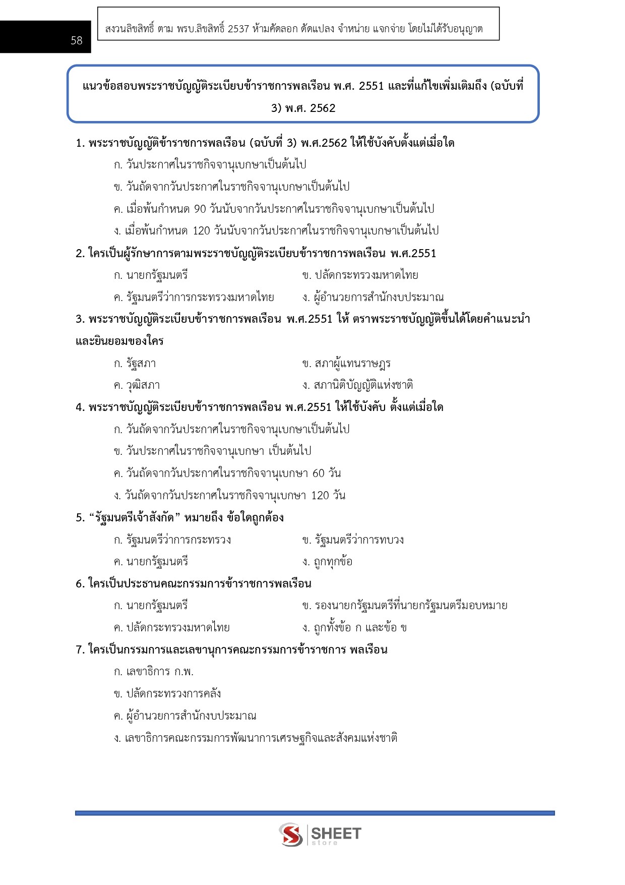 – แนวข้อสอบสรุปสาระสำคัญพระราชบัญญัติระเบียบข้าราชการพลเรือน พ.ศ. 2551 และที่แก้ไขเพิ่มเติมถึง (ฉบับที่ 3) พ.ศ. 2562