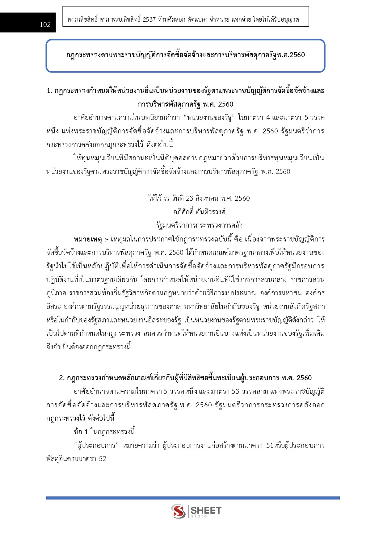 – แนวข้อสอบกฎกระทรวงตามพระราชบัญญัติการจัดซื้อจัดจ้างและการบริหารพัสดุภาครัฐพ.ศ. 2560