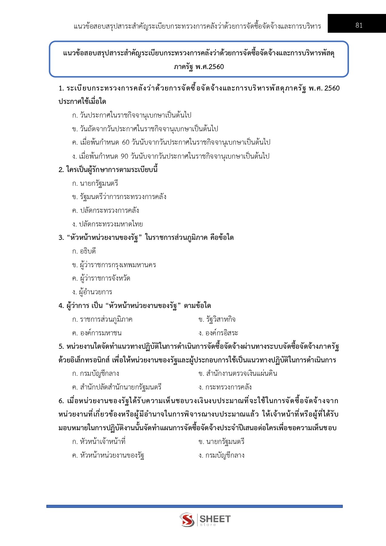 – แนวข้อสอบสรุปสาระสำคัญระเบียบกระทรวงการคลังว่าด้วยการจัดซื้อจัดจ้างและการบริหารพัสดุภาครัฐ พ.ศ. 2560