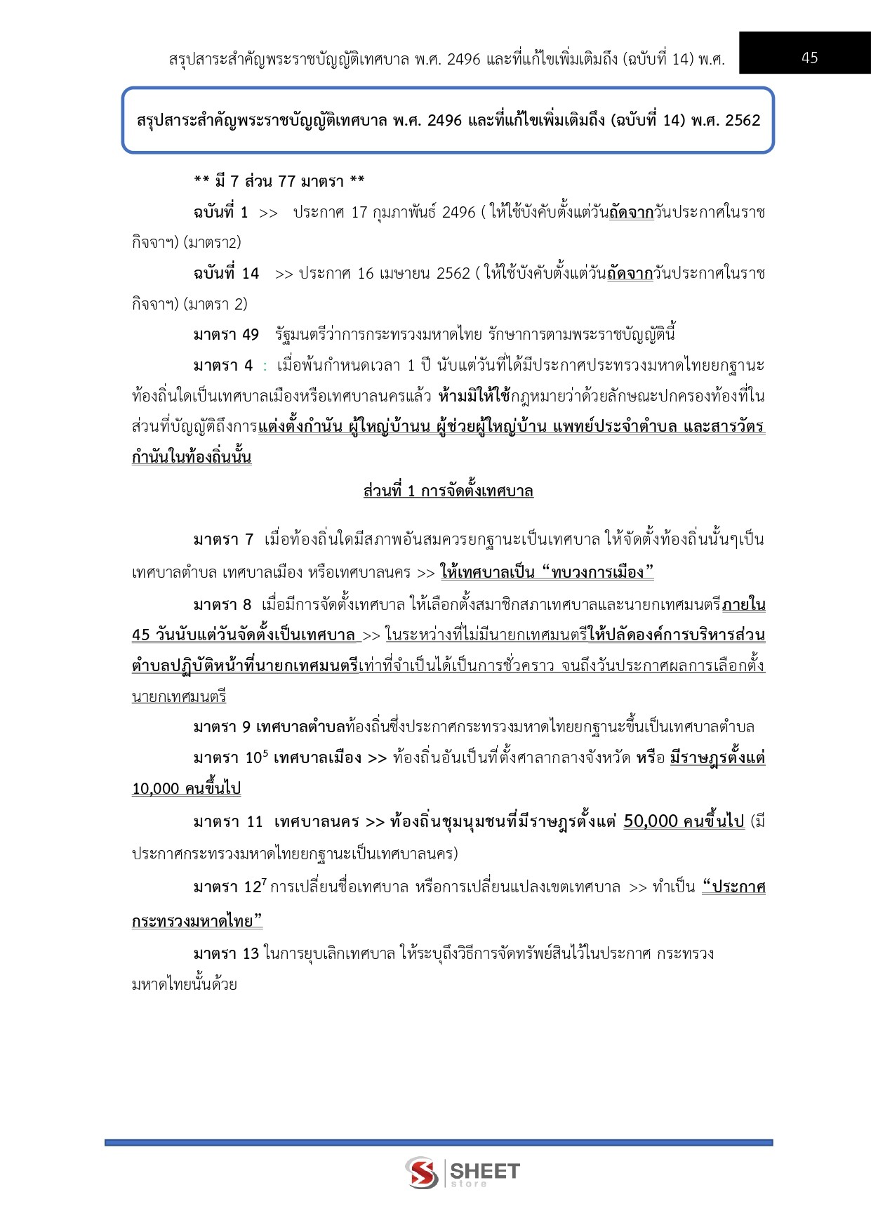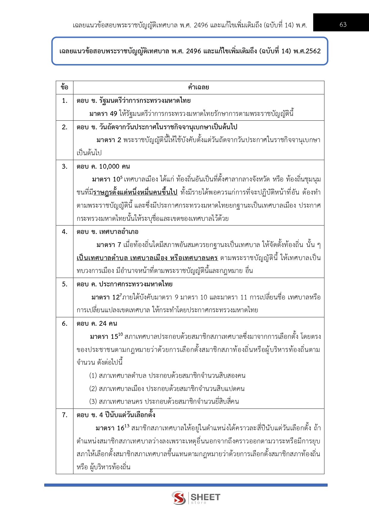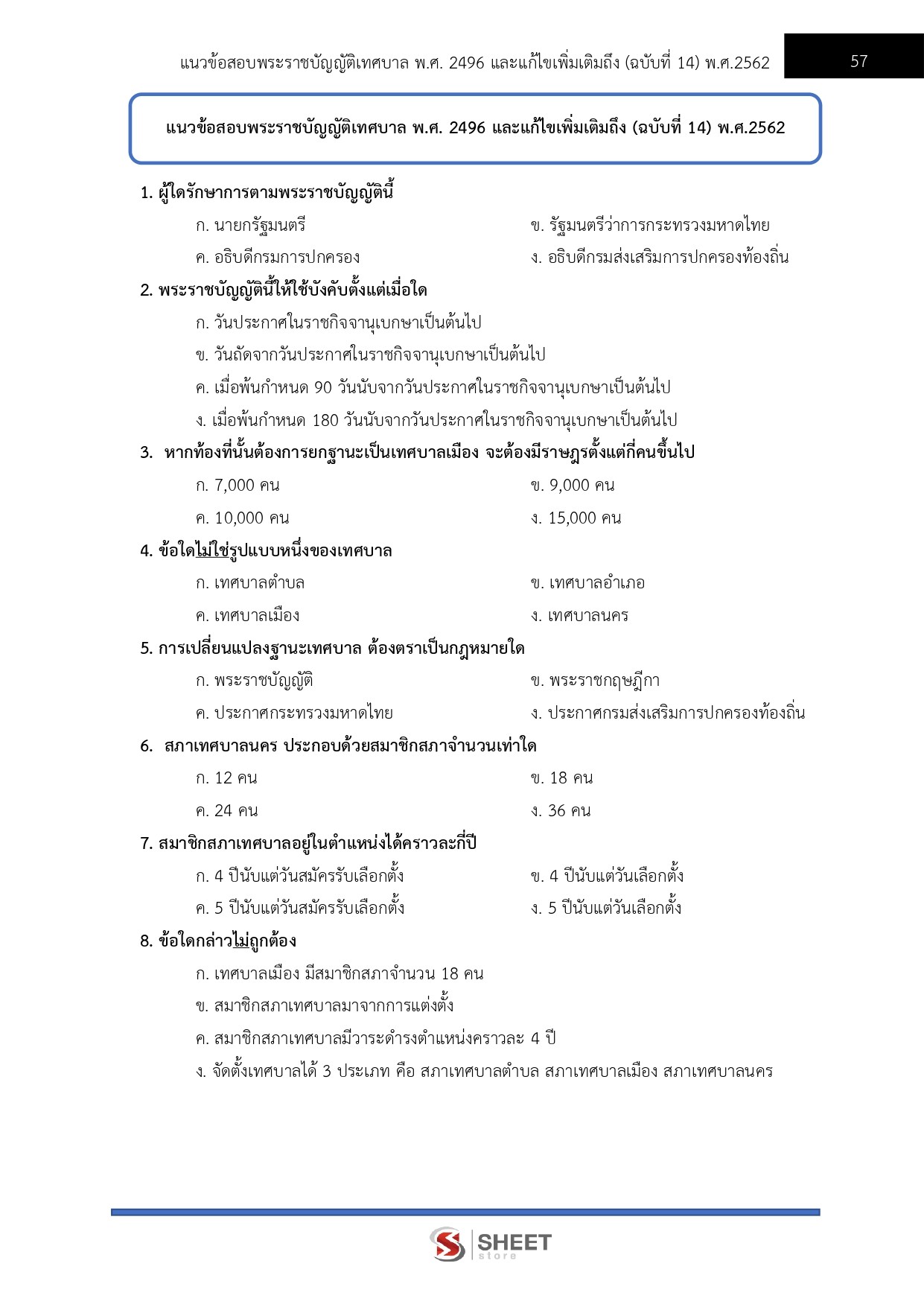 – แนวข้อสอบสรุปสาระสำคัญพระราชบัญญัติเทศบาล พ.ศ. 2496 และแก้ไขเพิ่มเติมถึง (ฉบับที่ 14) พ.ศ. 2562