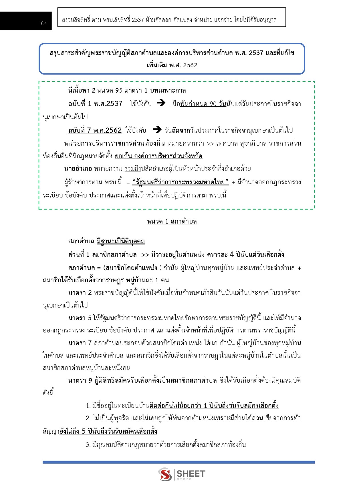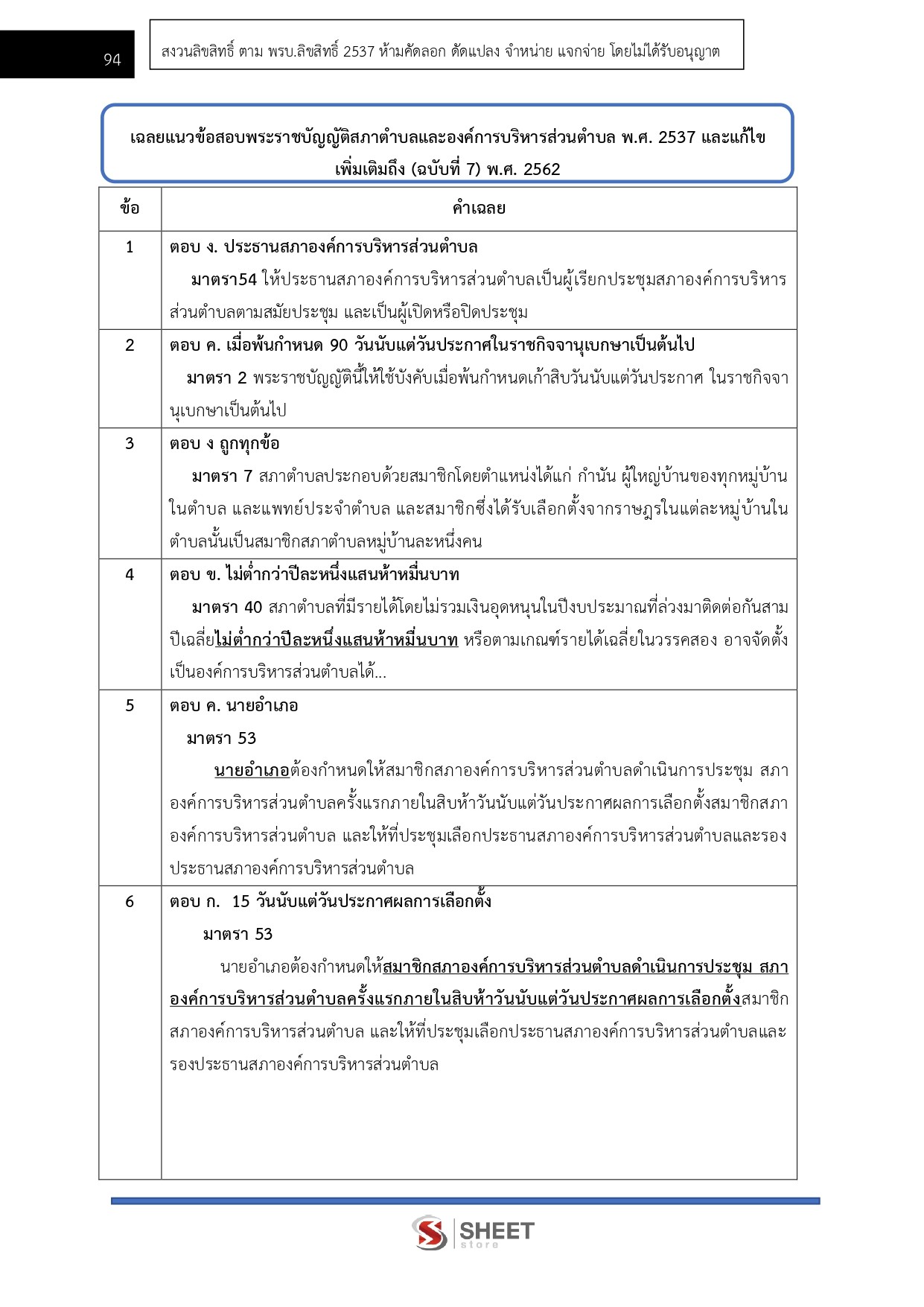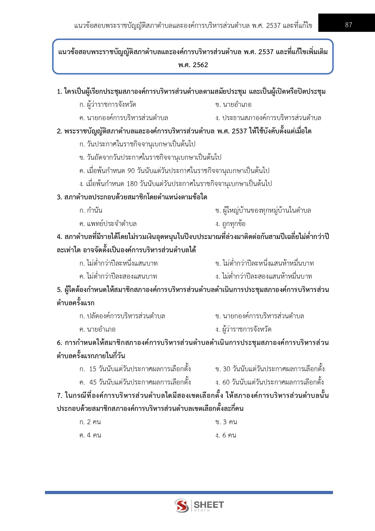 – แนวข้อสอบสรุปสาระสำคัญพระราชบัญญัติสภาตำบลและองค์การบริหารส่วนตำบล พ.ศ. 2537 และแก้ไขเพิ่มเติมถึง (ฉบับที่ 7) พ.ศ. 2562