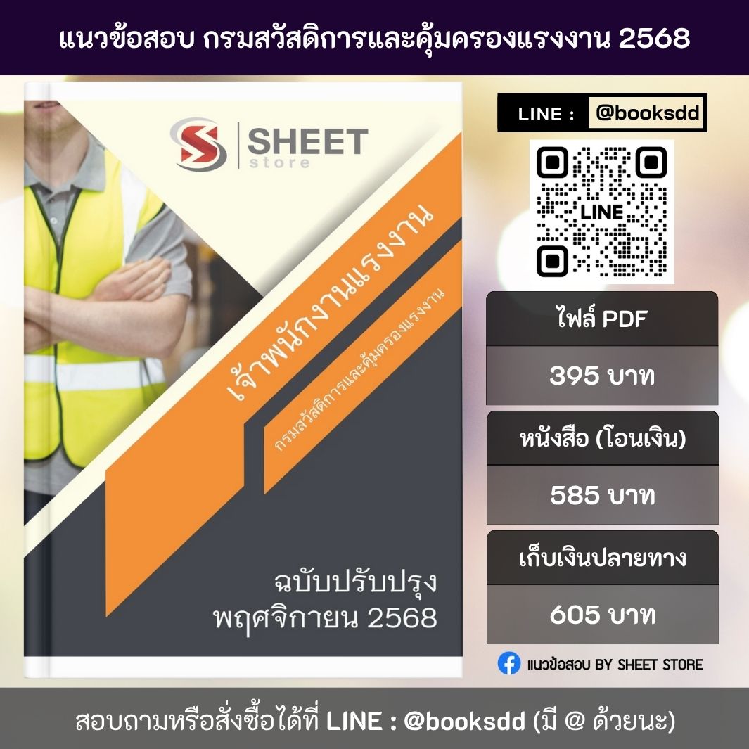 แนวข้อสอบ เจ้าพนักงานแรงงาน กรมสวัสดิการและคุ้มครองแรงงาน กสร. อัพเดตล่าสุด (สำหรับสอบพนักงานราชการ) 2568 เนื้อหาครบถ้วน ครอบคลุมทุกหัวข้อที่ต้องรู้ ครบตามประกาศรับสมัคร 📝 แนวข้อสอบ พร้อมเฉลยละเอียด ที่จะช่วยให้คุณสอบผ่านได้อย่างมั่นใจ จัดทำโดยทีมงานมืออาชีพเฉพาะตำแหน่ง สามารถสั่งซื้อ แนวข้อสอบเจ้าพนักงานแรงงาน กรมสวัสดิการและคุ้มครองแรงงาน 68 ได้ที่ LINE ID : @booksdd