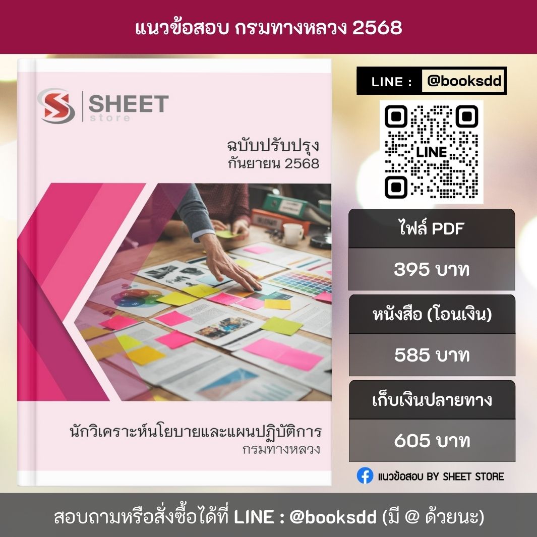แนวข้อสอบ นักวิเคราะห์นโยบายและแผนปฏิบัติการ กรมทางหลวง 2568 เนื้อหาปรับปรุงตามประกาศรับสมัคร กันยายน 2568 สรุปสาระสำคัญ แนวข้อสอบ พร้อมเฉลย จำหน่วยในรูปแบบ PDF หนังสือ เก็บเงินปลายทาง แนวข้อสอบกรมทางหลวง 68 จัดทำโดยทีมงานมืออาชีพเฉพาะตำแหน่ง สามารถสั่งซื้อ แนวข้อสอบ นักวิเคราะห์นโยบายและแผน กรมทางหลวง 68 ได้ที่ LINE ID : @booksdd
