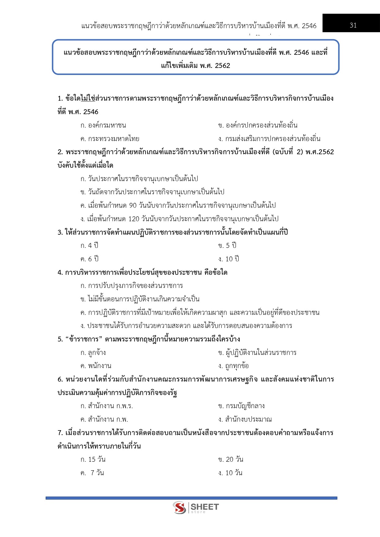 – แนวข้อสอบสรุปสาระสำคัญพระราชกฤษฎีกาว่าด้วยหลักเกณฑ์และวิธีการบริหารกิจการบ้านเมืองที่ดี พ.ศ. 2546 และที่แก้ไขเพิ่มเติมถึง (ฉบับที่ 2) พ.ศ. 2562