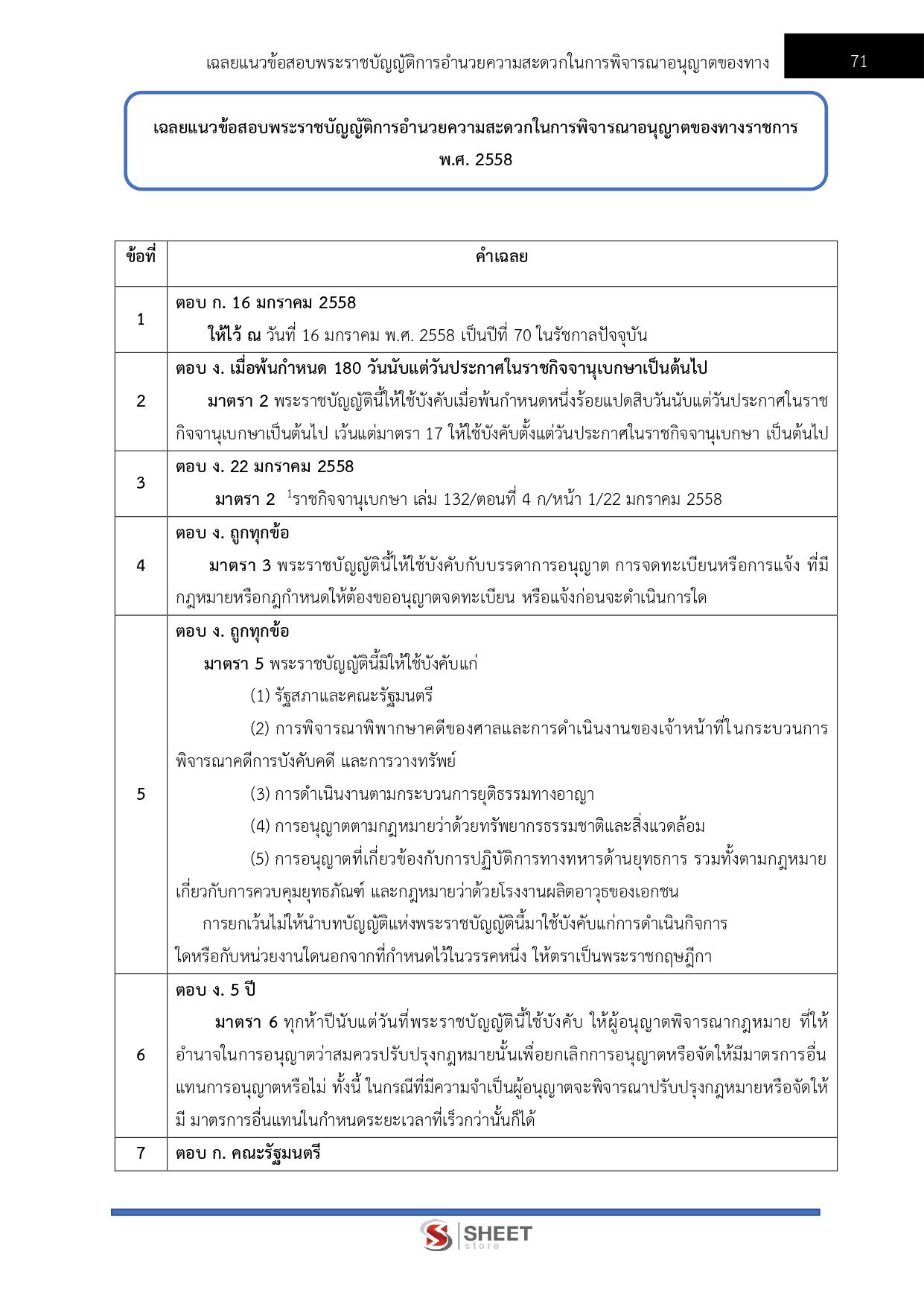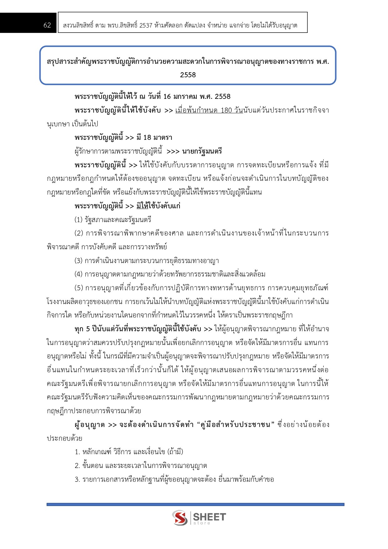 – แนวข้อสอบสรุปสาระสำคัญพระราชบัญญัติการอำนวยความสะดวกในการพิจารณาอนุญาตของทางราชการ พ.ศ. 2558