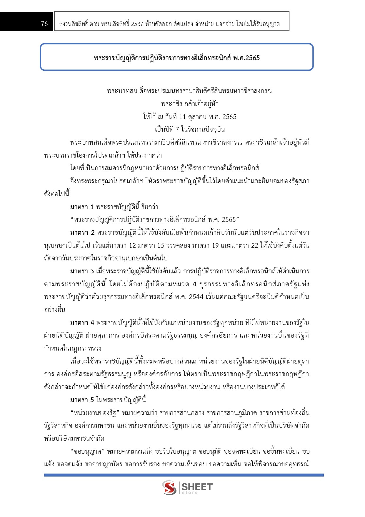 – พระราชบัญญัติการปฏิบัติราชการทางอิเล็กทรอนิกส์ พ.ศ. 2565